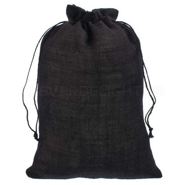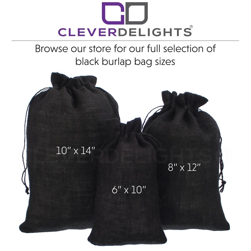 CleverDelights 10" x 14" Black Burlap Bags - 10 Pack - Jute Burlap Drawstring Sacks - 10x14 Inch
