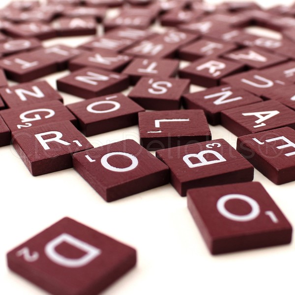 CleverDelights 100 Wood Letter Tiles - Maroon Color - Complete Set - Game Replacement Pieces