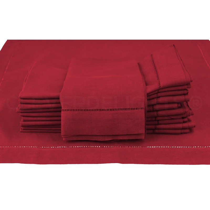 - Set of 12 red dinner napkins - Stylish 20 inch napkins with ladder hemstitch and mitered corners