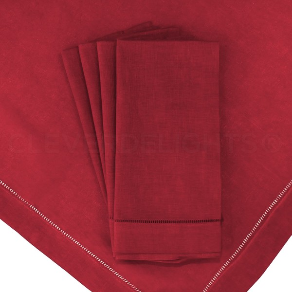 CleverDelights 20" Red Hemstitch Dinner Napkins - 12 Pack - 55/45 Linen Cotton Blend