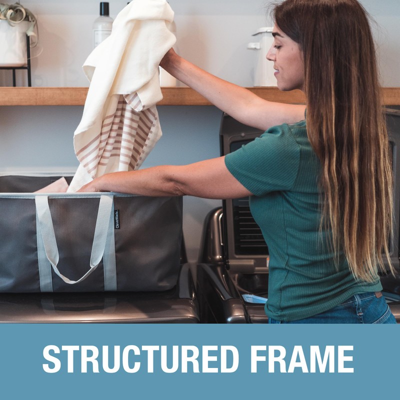 The CleverMade SnapBasket Collapsible Laundry Totes are a smart, space-saving solution to simplify your laundry and day-to-day tasks at your home. They're designed with a reinforced steel rim, a rigid baseboard and heavy-duty polyester for extreme durability. This versatile laundry basket features a flop-free structured design which means no more spilled clothes. The innovative laundry tote pops open with ease and combines packing, transport and storage into a reusable, collapsible tote. Great for travel, you can throw it in your suitcase for vacation or leave it in the trunk of your car. Measuring 22" L x 15" W x 11.5" H when open, it holds 62 liters (16 gallons) by volume, with a maximum load capacity of 55 pounds. Each carries enough clothing for 2 full large loads of laundry making it essential for trips to the laundromat, dorms, nursery and general organizing. Stability feet help to prevent tipping and 2 carry handles allow for steady and balanced transportation. This sturdy pop-up hamper/basket not only wipes clean, but collapses flat to less than 2" for compact storage. Great for both men and women!