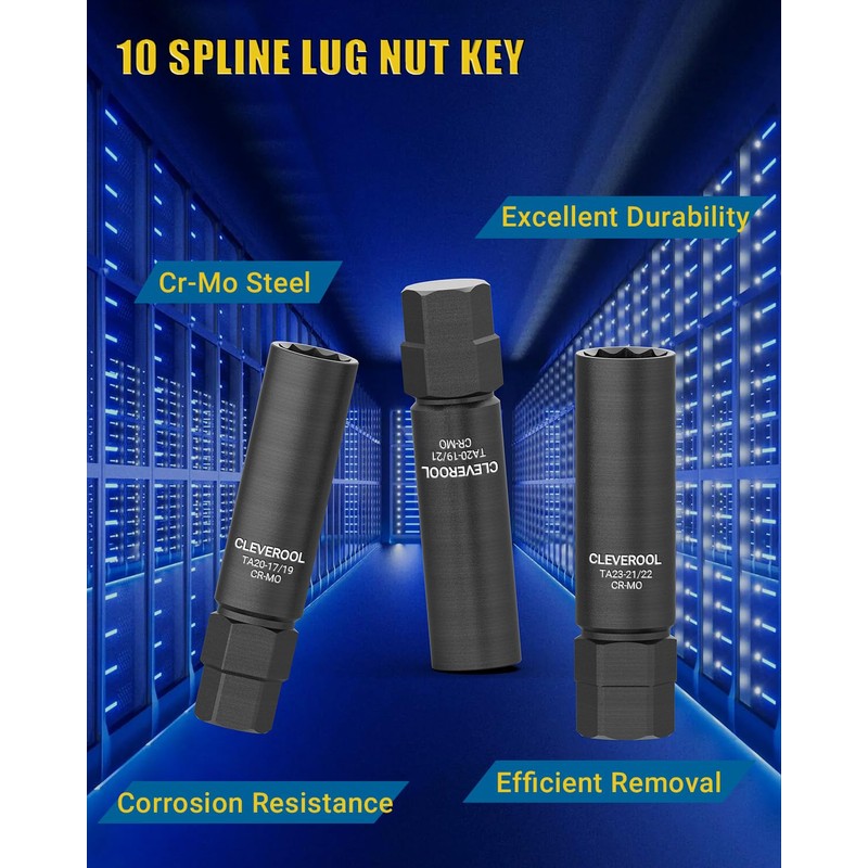 - Professional Tool -- CLEVEROOL 10 spline lug nut key is a replacement for TA23-21/22. Before using the wheel lug nut socket, make sure that the socket spline matches the spline of the lug bolt and nut.