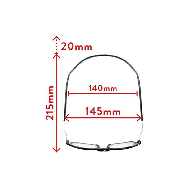 - 商品サイズ (幅×奥行×高さ) :フレーム巾140mm 奥行185mm(通常)+20mm、レンズ横53mm×縦26mm(内寸) 鼻巾20mm