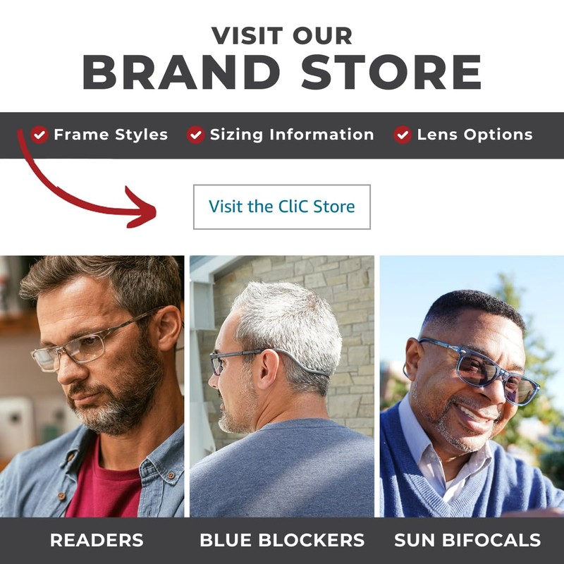 - DURABILITY YOU CAN DEPEND ON. Your CliC readers are manufactured with high-impact acrylic lenses, strong neodymium magnets, and a durable TR90 wrap-around rigid headband strap. Along with our unique 180 degree hinges that allow each lens to fold upward towards the frame or straight down around the neck. CliC glasses are built with the expectation that you'll be wearing them for years to come.