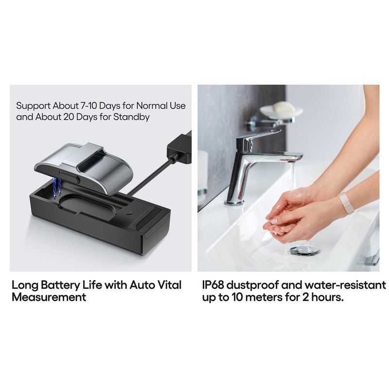 - Long Battery & Waterproof: Up to 10 days of use with 2-hour charge; IP68 water resistance makes it splash-proof, sweat-proof, and suitable for daily use. Compatible with iPhone & Android.