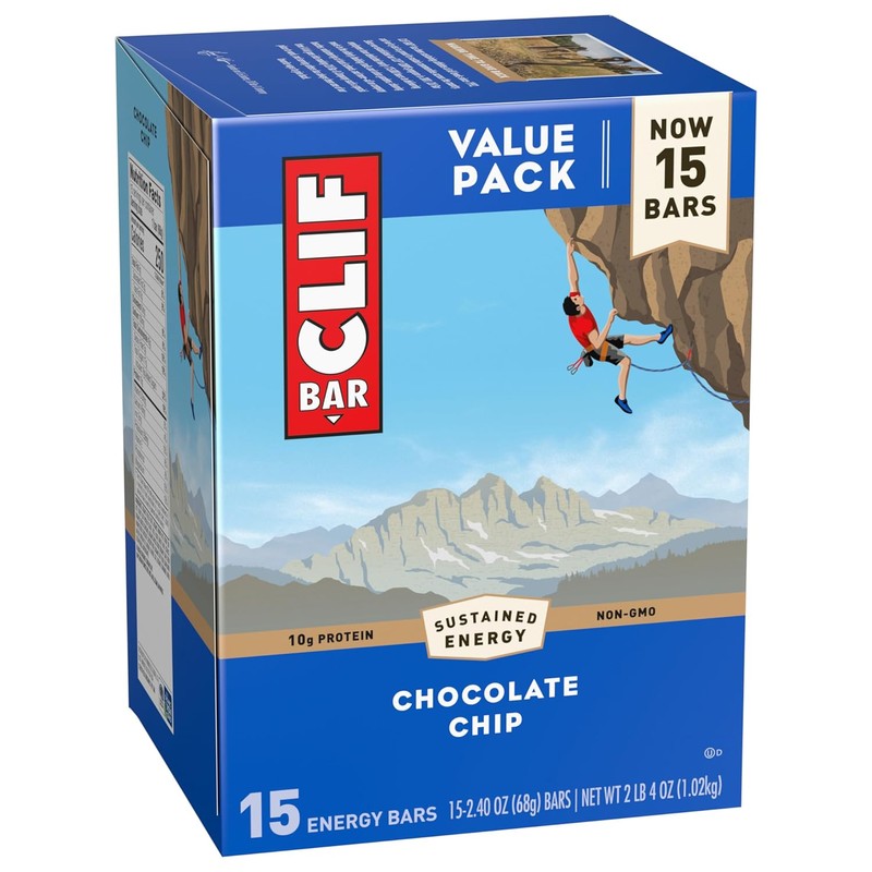 CLIF BAR - Chocolate Chip - Made with Organic Oats - Energy Bars - Non-GMO - Plant Based Protein Bars (15 Pack)