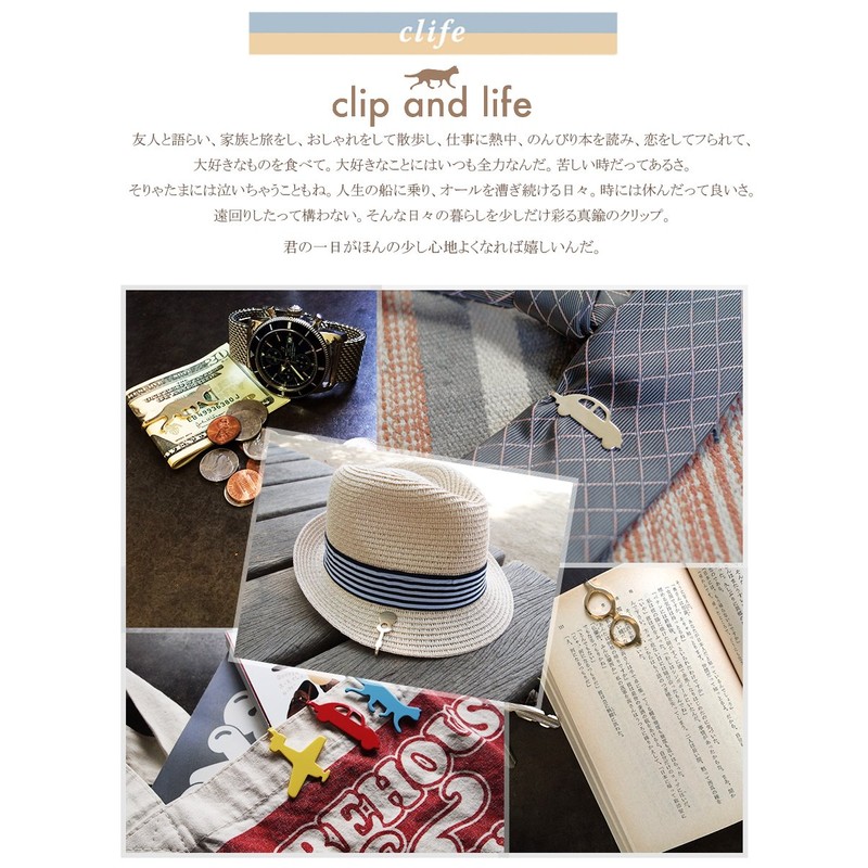 - Brass clip (made in Japan/made in Osaka) You can use it in your jacket pocket, bookmark, tie clip or money clip