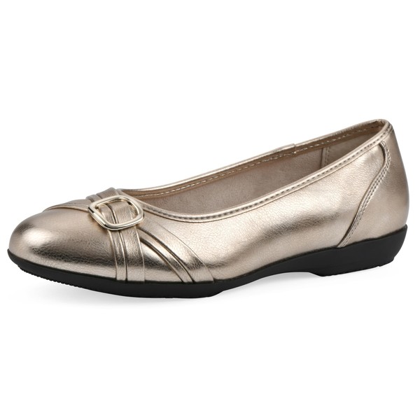 CLIFFS BY WHITE MOUNTAIN Women's Calming Cushioned Ballet Flat, Lt Gold/Metallic/Smooth, 6.5