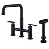 Clihome Matte Black Kitchen Faucet Bridge with Side Sprayer, 2 Handles Faucet for Kitchen 4 Hole Kitchen Sink Faucet with Pull Down Sprayhead