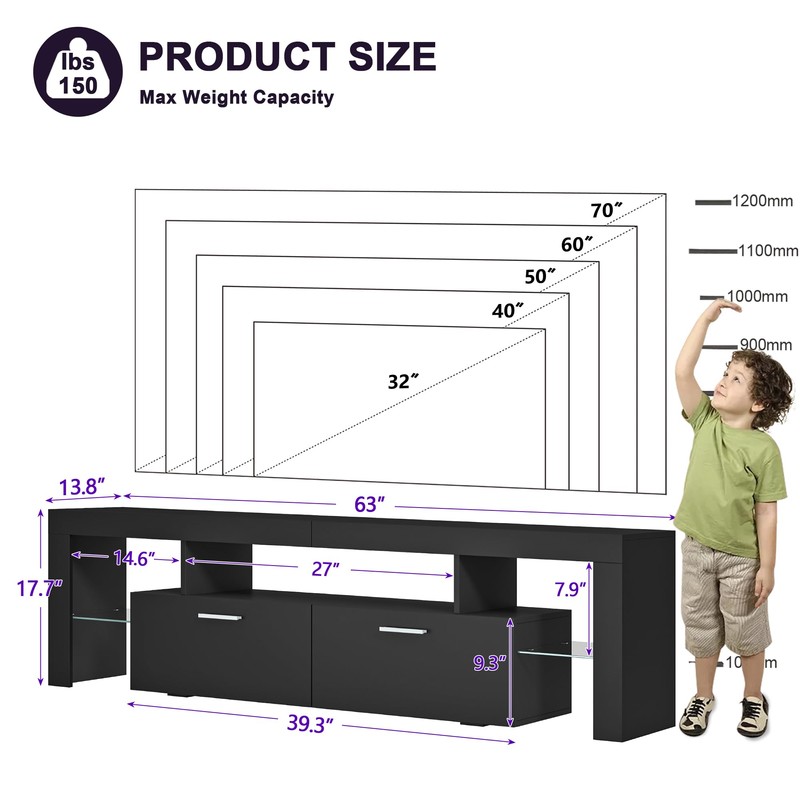 - 【Sufficient Space】-Along with an open-layer frame, each black LED TV stand with high gloss features two big drawers perfect for storing video games, movies, remote controls, entertainment accessories and more.