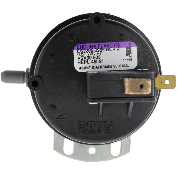ClimaTek Furnace Air Pressure Switch Replaces Lennox Armstrong Ducane Part # 49L91 49L9101 .51" WC