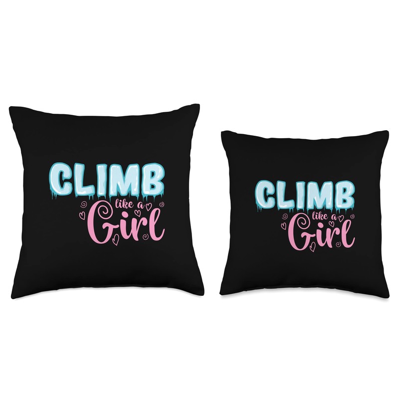 Climb like a Girl Extreme Sports Ice Climbing Throw Pillow