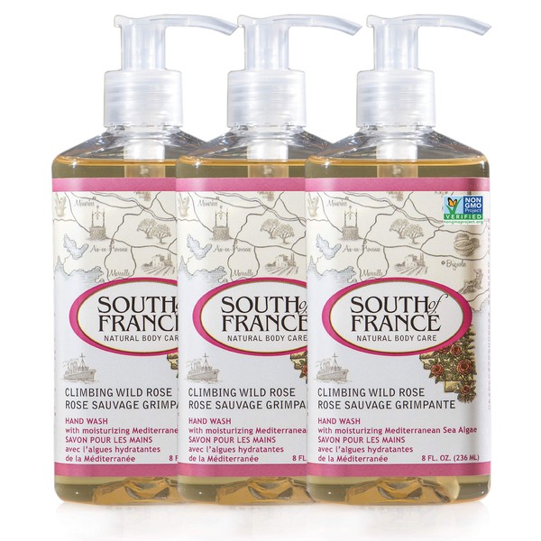 Climbing Wild Rose Clean Hand Wash by South of France Clean Body Care | Moisturizing Liquid Hand Soap with Mediterranean Sea Algae | 8 oz Pump Bottle – 3 Pack