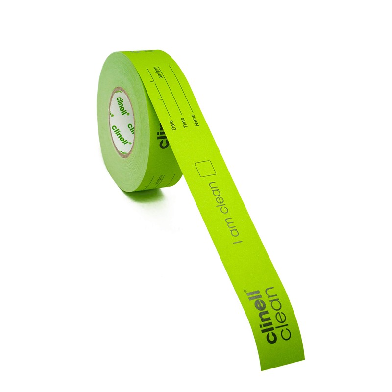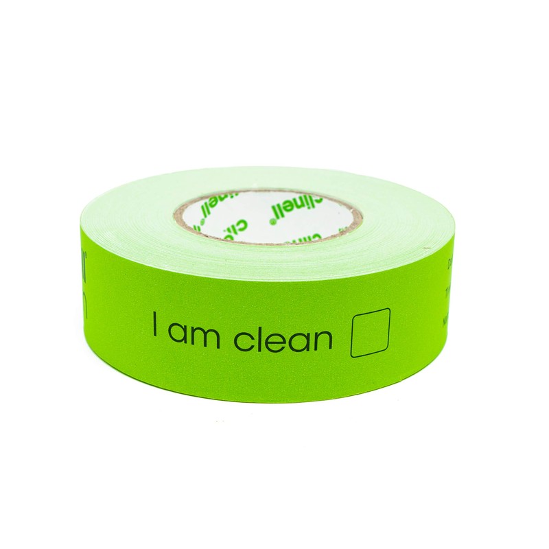 Clinell Clinell Indicator Tape - Sanitation Procedure Indicator Tape - 100 m Roll - No Sticky Residue; Easy to Read - Green I Am Clean Tape