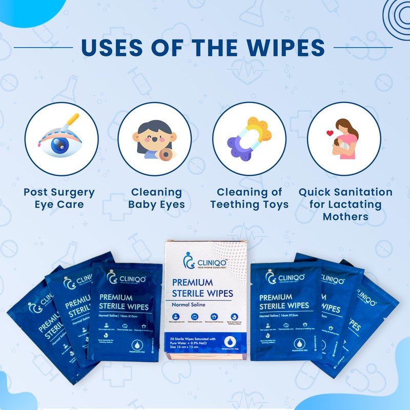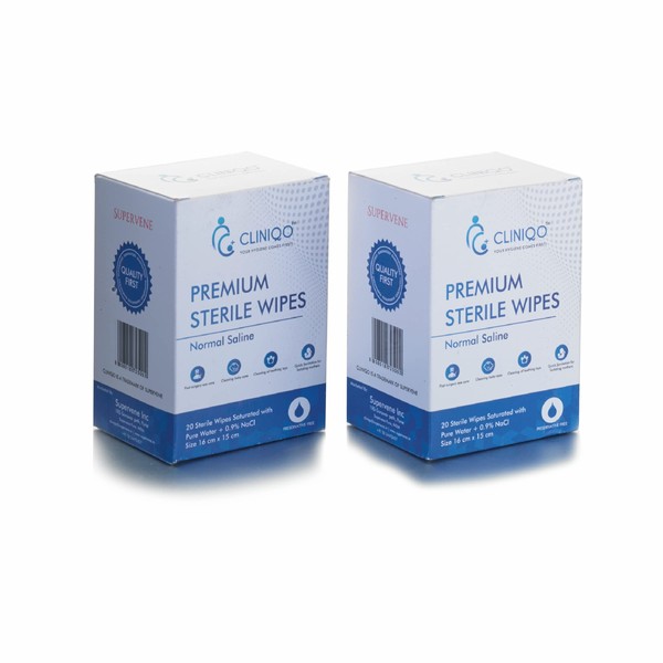 CLINIQO Wipes Normal saline 20 sterile wipes 15*16 cm (PACK OF 2)