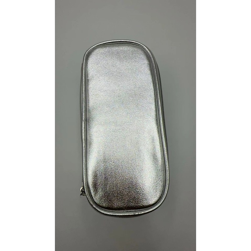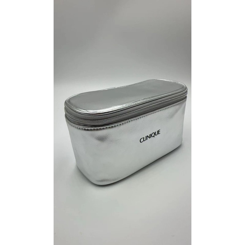NEW Clinique Makeup silver faux Leather Bag Medium Train Casesize : 8.5'' x 5.5'' x4.5''