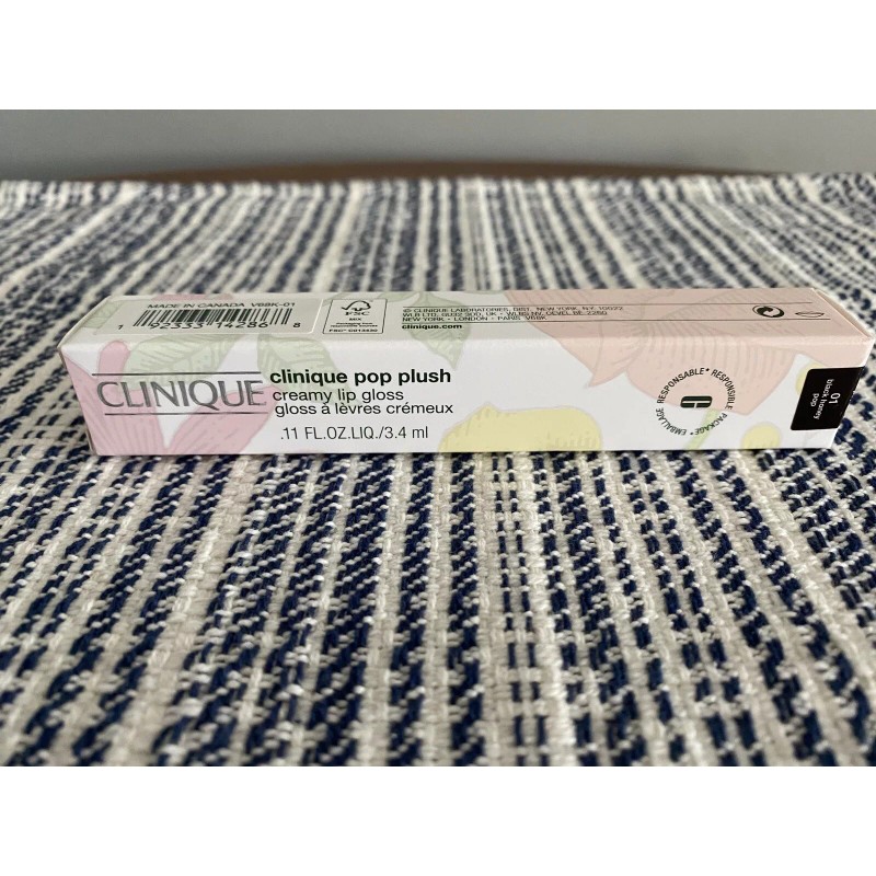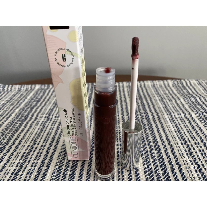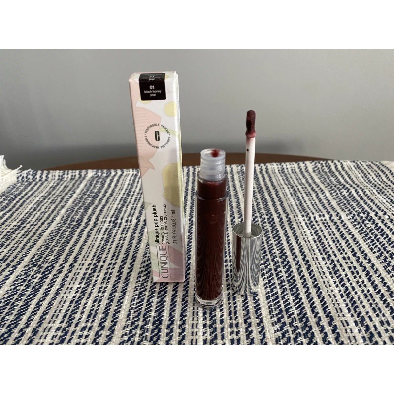 CLINIQUE Pop Plush Creamy Lip Gloss in Black Honey Pop, Full Size .11 fl oz NIB.