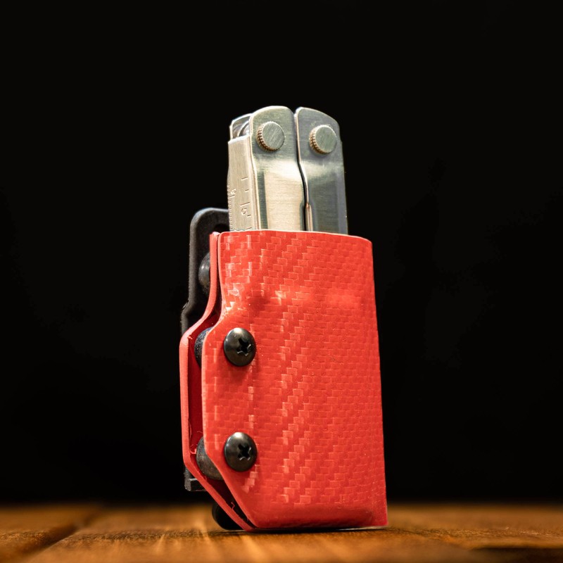 Clip & Carry Kydex Multitool Sheath for the Leatherman Bond - Made in USA - EDC Multi Tool Sheath Holder Holster Cover - Carbon Fiber Red
