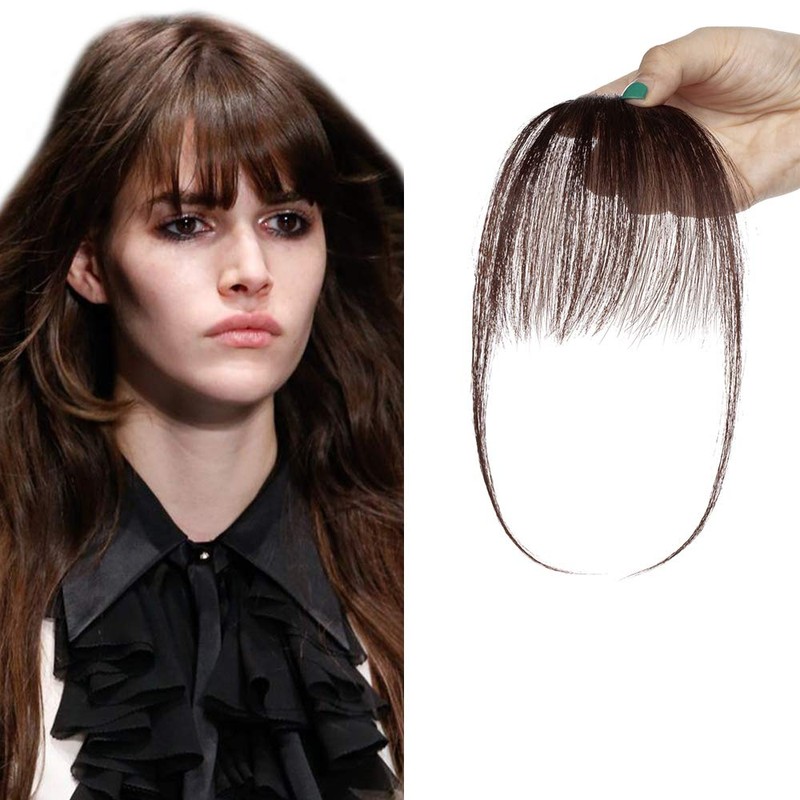 Clip in Fringe Bangs Human Hair Extensions #2 Dark Brown