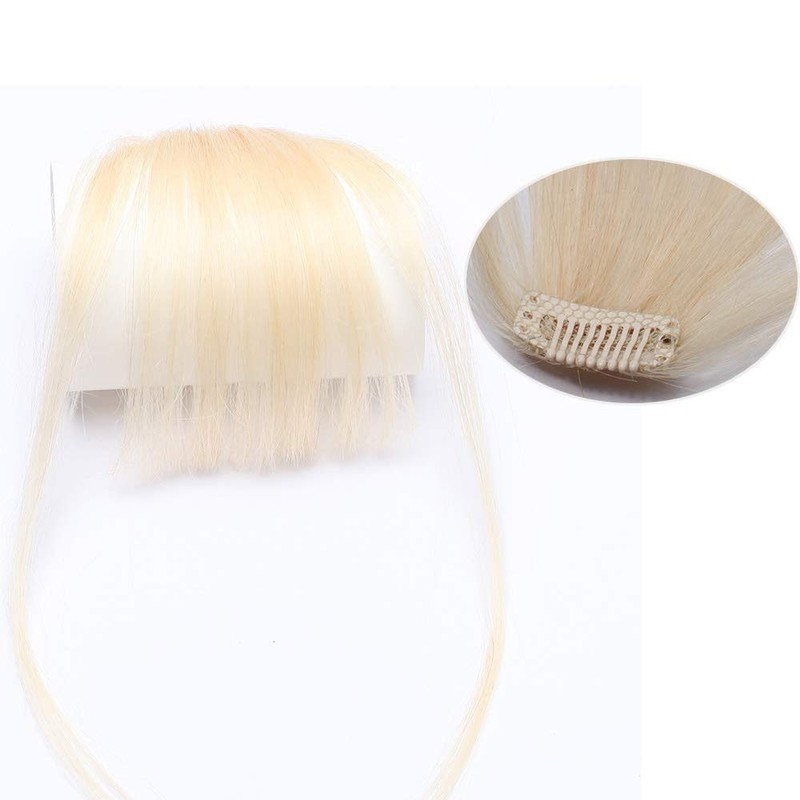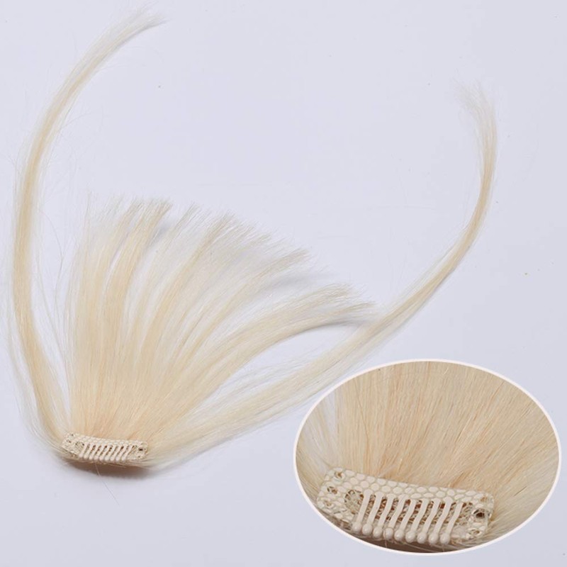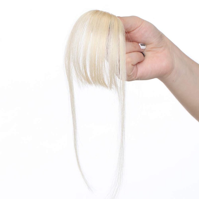Clip in Fringe Hair Piece Human Hair 100% Remy One Piece Hair Extension Real Hair Clip in Air Bangs with Side Temple Straight (#60 Platinum Blonde)