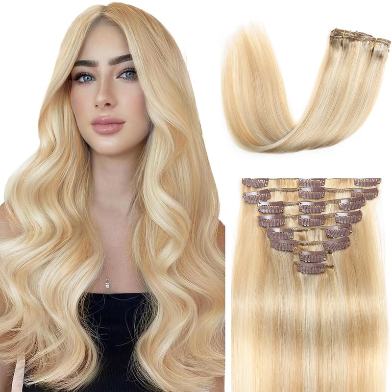 - Real Human Hair Extensions Clip ins Salon Quality Assurance: Our remy hair extensions are crafted from 100% premium human hair, ensuring a luxurious, natural appearance. The cuticles are perfectly aligned for a smooth, tangle-free experience that blends seamlessly with your own hair, providing comfort and a confidence boost with every use.