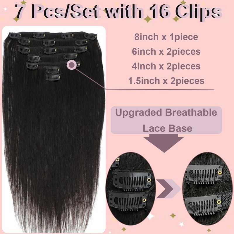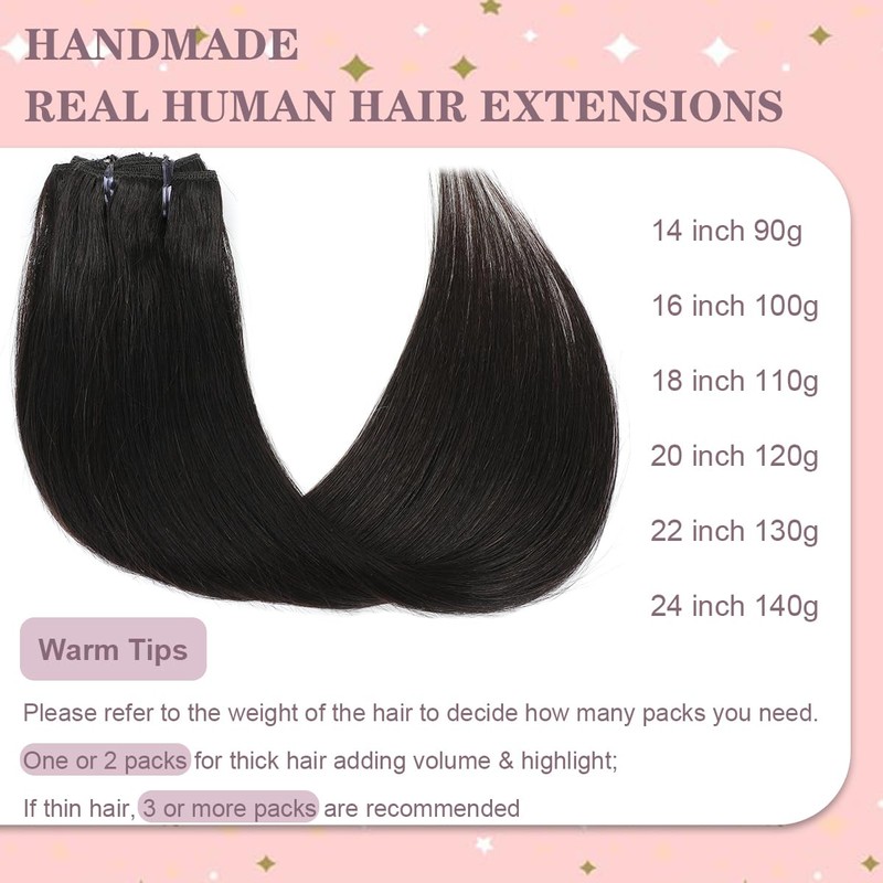 - Available in Various of Colors & Sizes: Our clip in human hair extensions are available in a set of 7 pcs. Available in 6 lengths from 14 inches to 24 inches (90g-140g). Nutural black Hair Extensions Blonde Hair Extensions, Highlight Hair Extensions, a variety of colors to satisfy your color cravings.