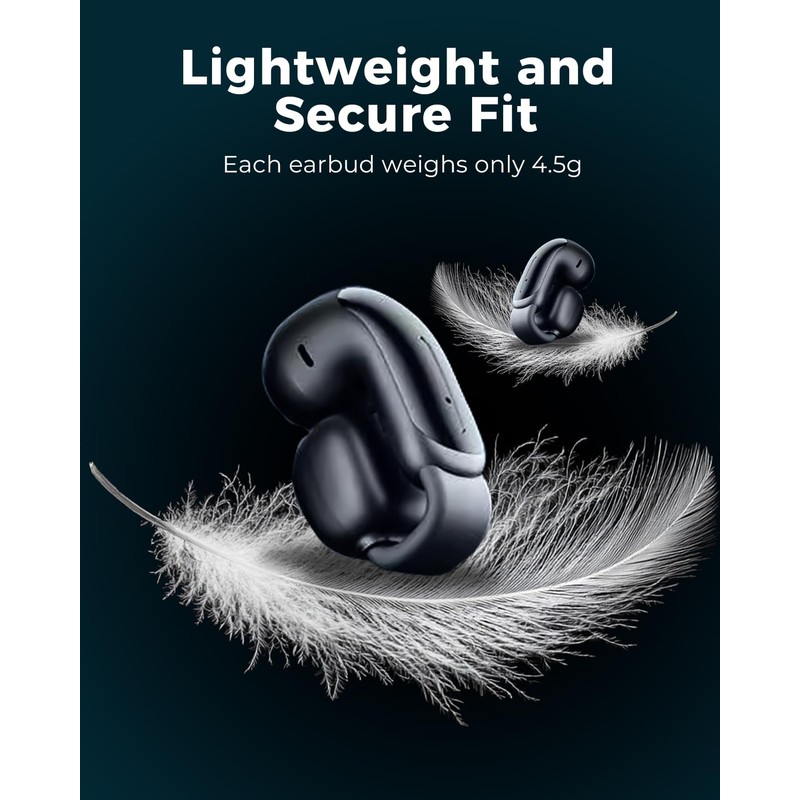 - Secure Clip Design & All-Day Comfort Featuring an innovative ear-clip structure that molds naturally to any ear shape, these bone conduction earbuds stay firmly in place during workouts, runs, or intense gaming sessions. Weighing just 4.5g per earbud, the open-ear design eliminates pressure on the ear canal, ensuring "wear-and-forget" comfort even after hours of use. Perfect for cyclists, gym enthusiasts, or multitasking professionals who need situational awareness.