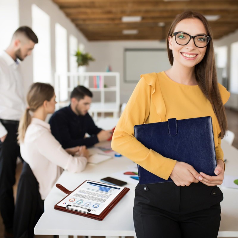 - 【File Storage】Our folder features a versatile design with multiple slots and pockets to neatly organize important business documents, travel tickets, resumes, business cards, iPad, a pen loop, and a sturdy metal clip to securely hold your papers in place.