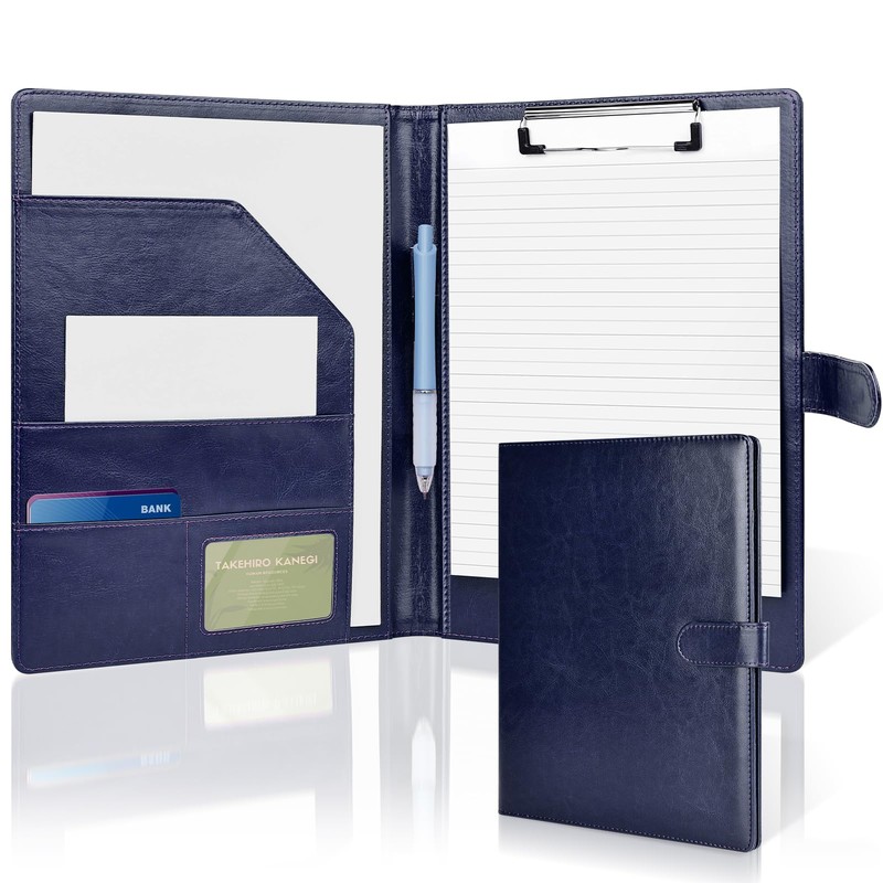 Clipboard Folder A4, Professional PU Leather Portfolio Folder, Legal Pad Holder for A4 Letter Size Notepad, Resume, Writing Pad, Ideal Organizer for Business Office Conference, Darkblue