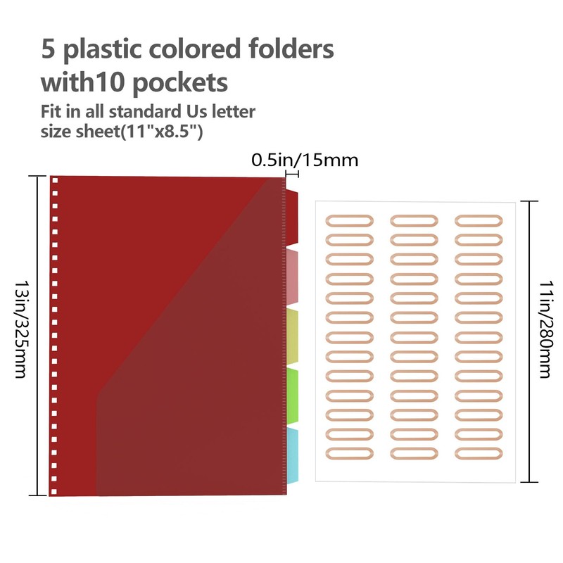 - 【Stay Organized】Clipboard with storage features interior pocket to store important loose documents. The clipboard comes with 5 extra plastic colorful folders with 10 pockets fit in all standard US letter size sheets to hold your important notes. Plus 39 file folder labels self adhesive stickers for organized use. The stretchy band to keep your paper work closed, prevents contents from getting damaged.