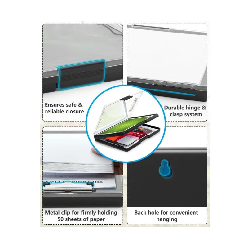 Clipboard with Storage,Heavy Duty Clip Boards 8.5x11 with 2 Storage Case,Clear