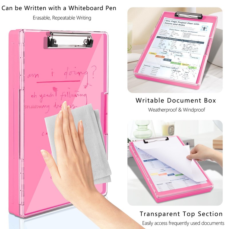 - 📝【Writable Storage Clipboard】Clipboards with a transparent top panel, transparent and waterproof, easy to carry, read files, even on harsh rainy days, it can keep your work files dry and safe, and allow you to easily access documents.