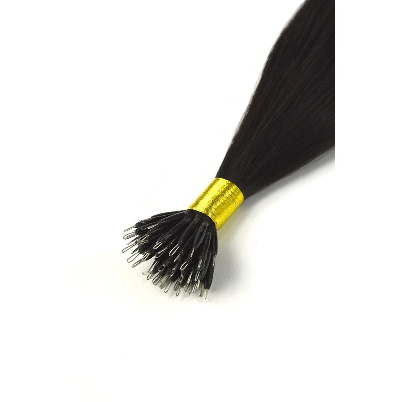 Cliphair US Nano Ring Hair Extensions Double Drawn - Off/Natural Black (#1B), 18" (50g)