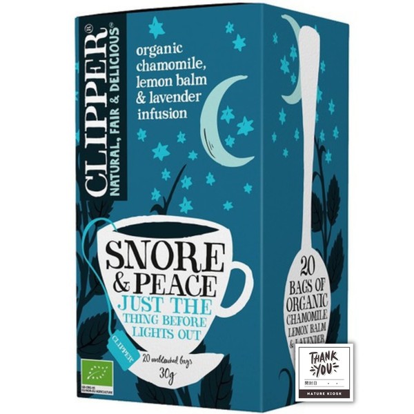 Clipper Snoa & Peace Organic Caffeine Free Herbal Tea 20P Organic Tea Chamomile, Lemon Balm & Lavender Infusion Snore & Peace 20P with Nature Kiosk Open Date Label