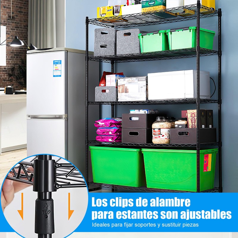- Aplicación: El clip de fijación para estantes de alambre se puede utilizar para fijar la conexión de los soportes para estantes en cocinas, restaurantes, bares, cafeterías y panaderías