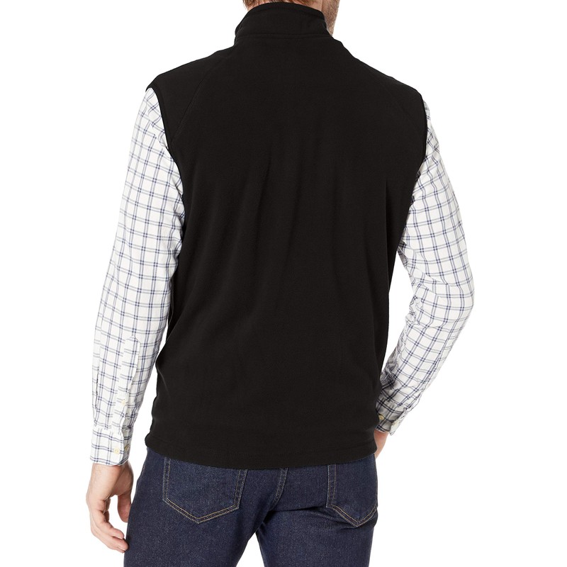 - Microfleece full zip vest with decorative overclock seams on shoulders
