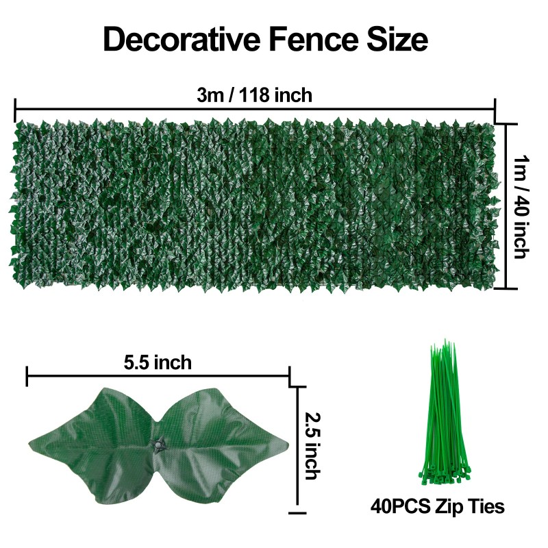 【Decorative & Protective】The artificial ivy privacy fence creates a pleasant barrier, and it also adds some fresh colors to your house. It is a great addition to balconies, terraces, decks, porches, greenery and privacy.