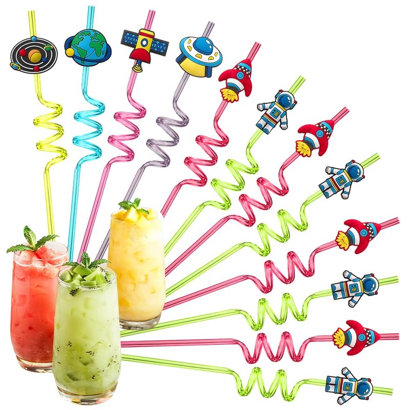 - Space series straws: you will receive 16 cartoon children's straws, 4 astronauts and rockets, 2 UFOs, launch rockets, star tracks and the earth. With bright colours and cute patterns, straws can attract children's attention and add a touch of fun to drink.
