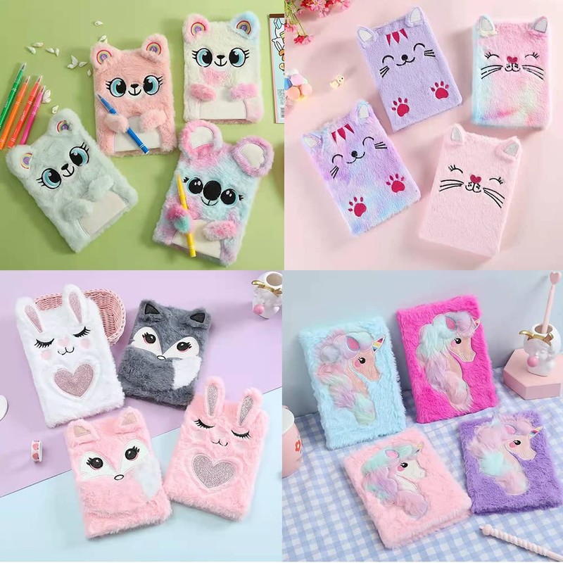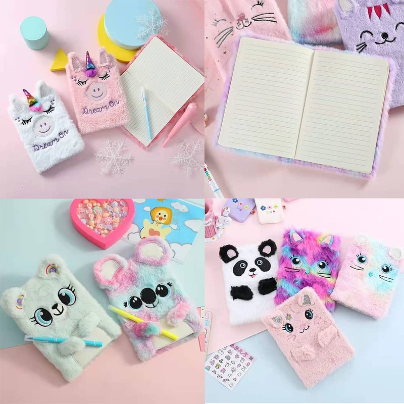 - ❤ Cute Design: No girl or woman would not like colorful stuffed animals, this Fuzzy Diary is a great gift for Animal Lover, Unicorn, Rabbit, Bear, Koala, Cat, Panda, Fox...choose which you like! Each notebook comes with a lovely pink strawberry gel pen with black ink.