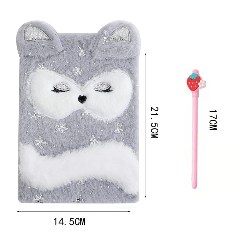 Clivetalos Plush Unicorn Rainbow Diary Notebook Fuzzy Journal Animal Lover Gifts for Kids Girls Teens Writing Pad A5 Lined 160 Pages Snow Gray Fox