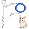 CLKHOWL Dog Stake Tie Out Cable - 16/30" Anti Rust Reflective Stake for Medium Large Dogs Up to 125 lbs, Dog Cable Runner and Metal Hooks for Yard, Camping, or Outdoors (Blue, 16FT)