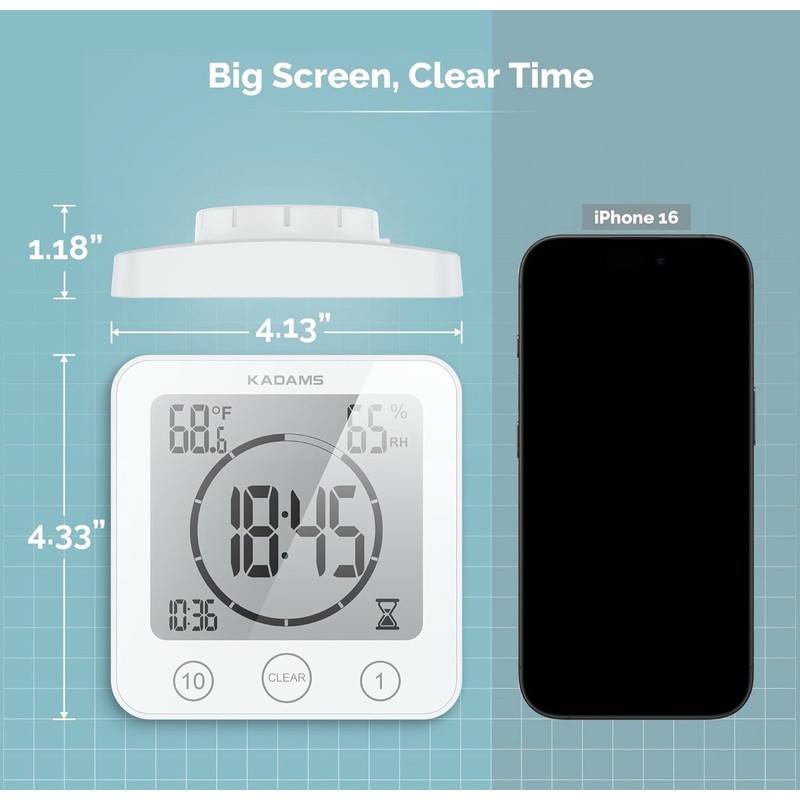 Efficient Time Management ] Stay organized and save time with KADAMS water-resistant bathroom shower clock timer, designed to help you keep track of your daily schedule