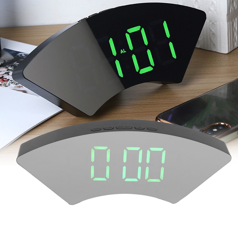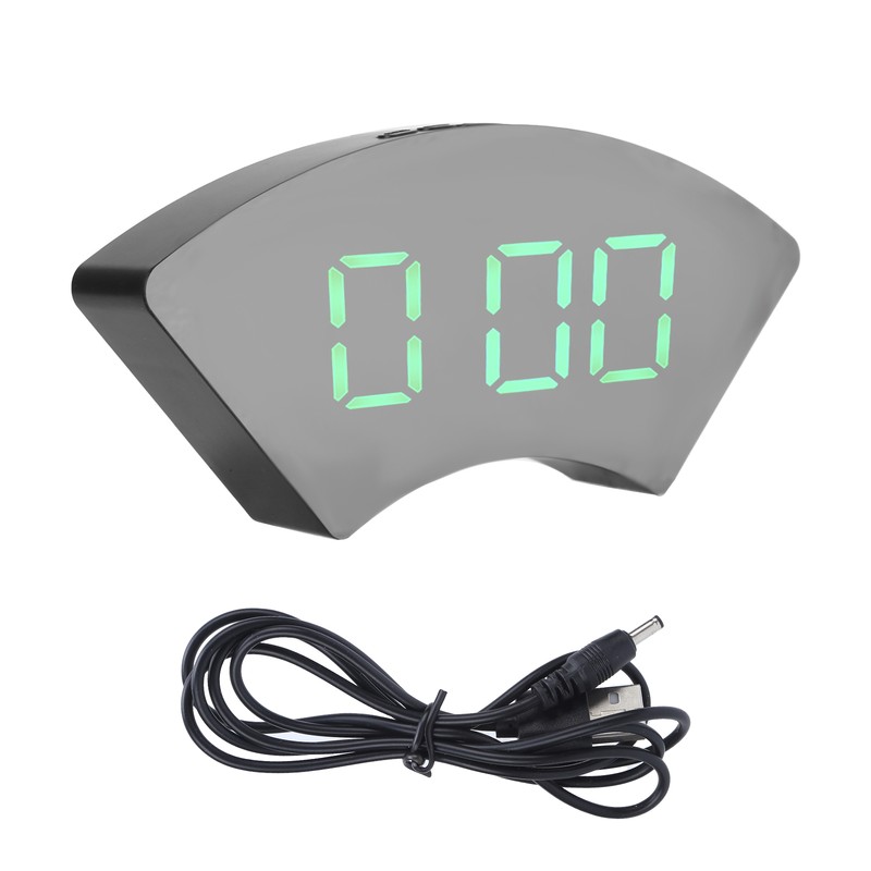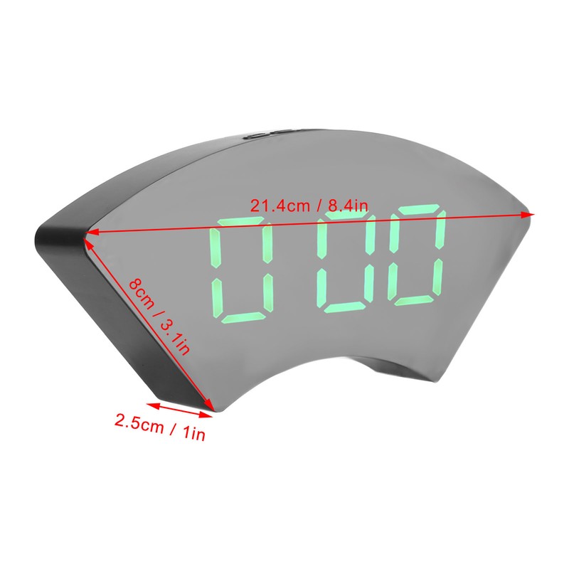1、Work and rest modes can be set, 12/24-hour system is easy to operate and one screen can display the date (month, day, year) 2、The product has time memory function (powered by 3 AAA batteries), high-definition large screen, mirror LED digital clock, an alarm clock and a mirror 3、Not only a multifunctional alarm clock, but also an excellent decoration for bedroom and living room, which can perfectly match the style of home decoration 4、Unique mirror technology, the alarm clock can also be used as a makeup mirror 5、When using a USB cable, the LED indicator will always light up. With snooze function. Temperature switch and time display, temperature range: ‑10℃‑50℃, night mode setting (18:00‑06:00), two‑level brightness adjustment, five‑function buttons