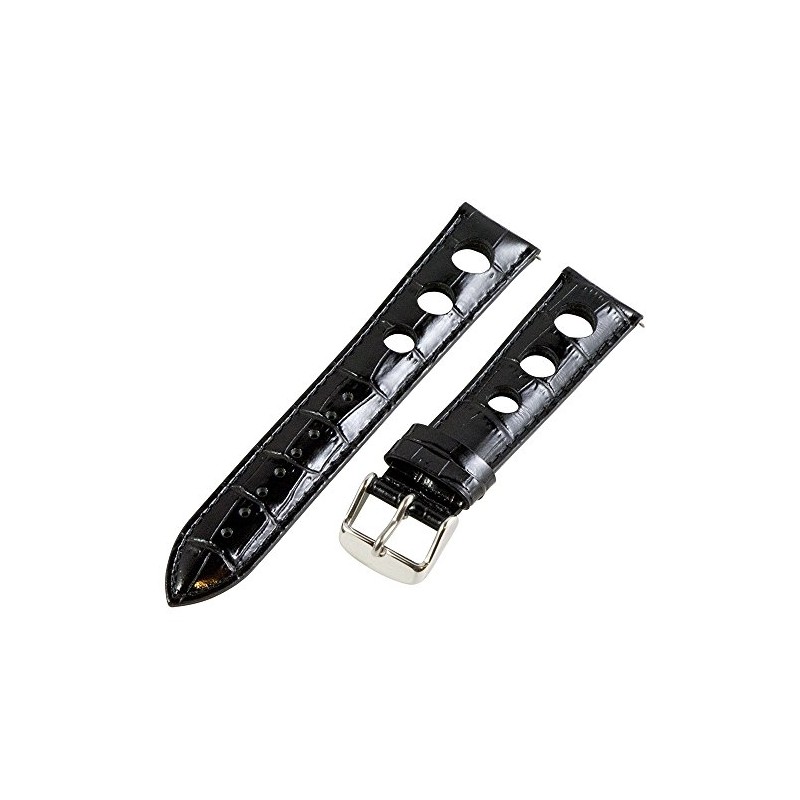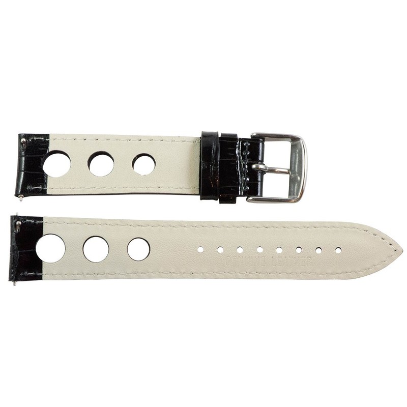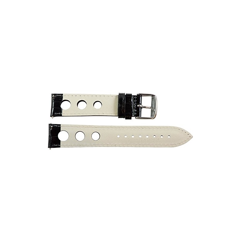 Clockwork Synergy, LLC 18mm Rally 3-hole Croco Black Leather Interchangeable Replacement Watch Band Strap