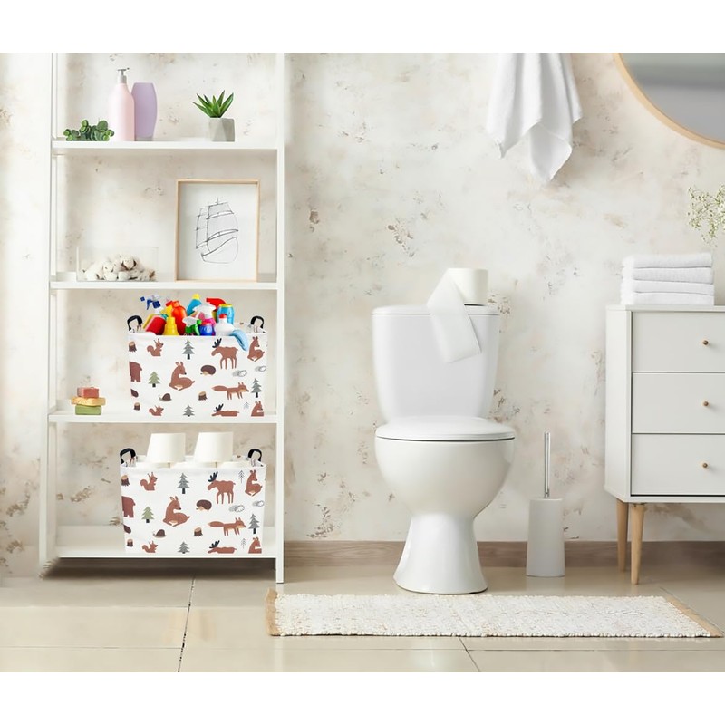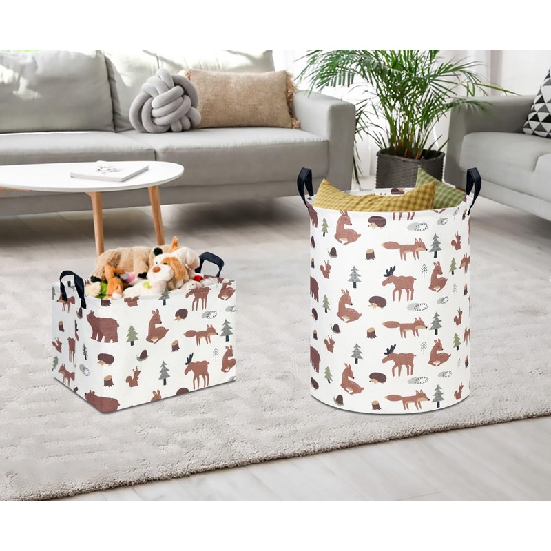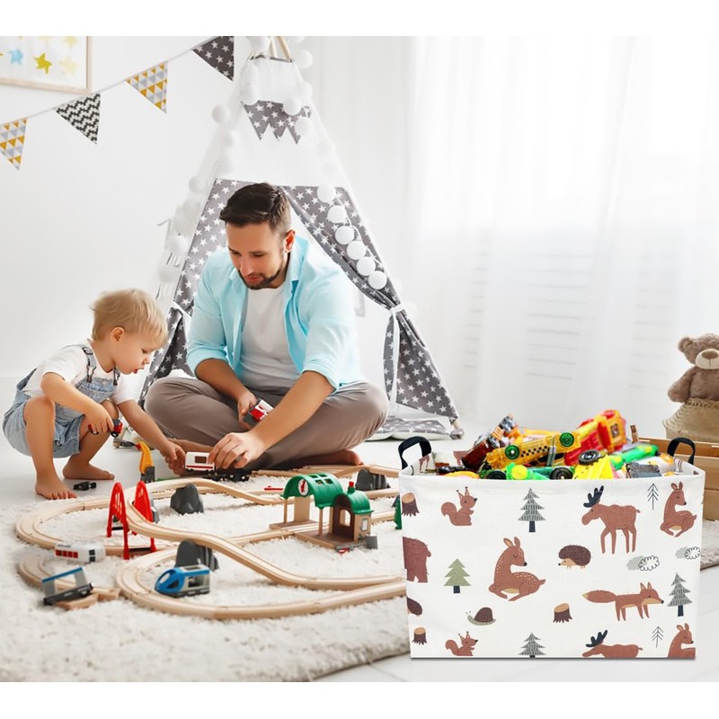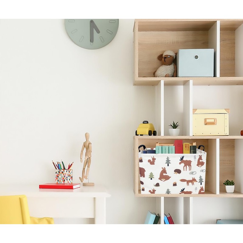 CLOCOR Rectangular Storage Basket,Kids Toys Basket,Collapsible Fabric Storage Container,Waterproof Toy Bin with Handles,Gift Basket(Brown Animals)