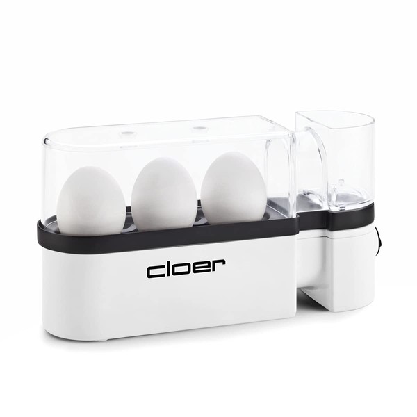 Cloer 6021 Egg Cooker, up to 3 Eggs, Removable Egg Carrier, Serving Function, 300 Watt, Plastic, White