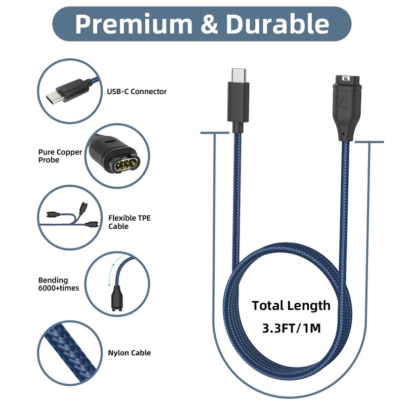 - USB-C Charger : USB-C charging cable for garmin, supports both data transfer and charging, ensuring you're always backed up with both information and power.as long as the shape of the watch charging socket is the same, you can use it with confidence, a great replacement charger for your garmin watch