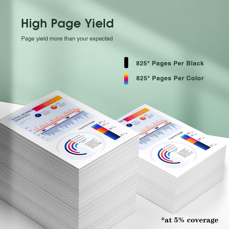 - 【High Yield】: For hp 902xl ink cartridges combo pack up to 825 pages per 902XL black cartridge, 825 pages per 902XL color cartridge (at 5 percentage coverage)