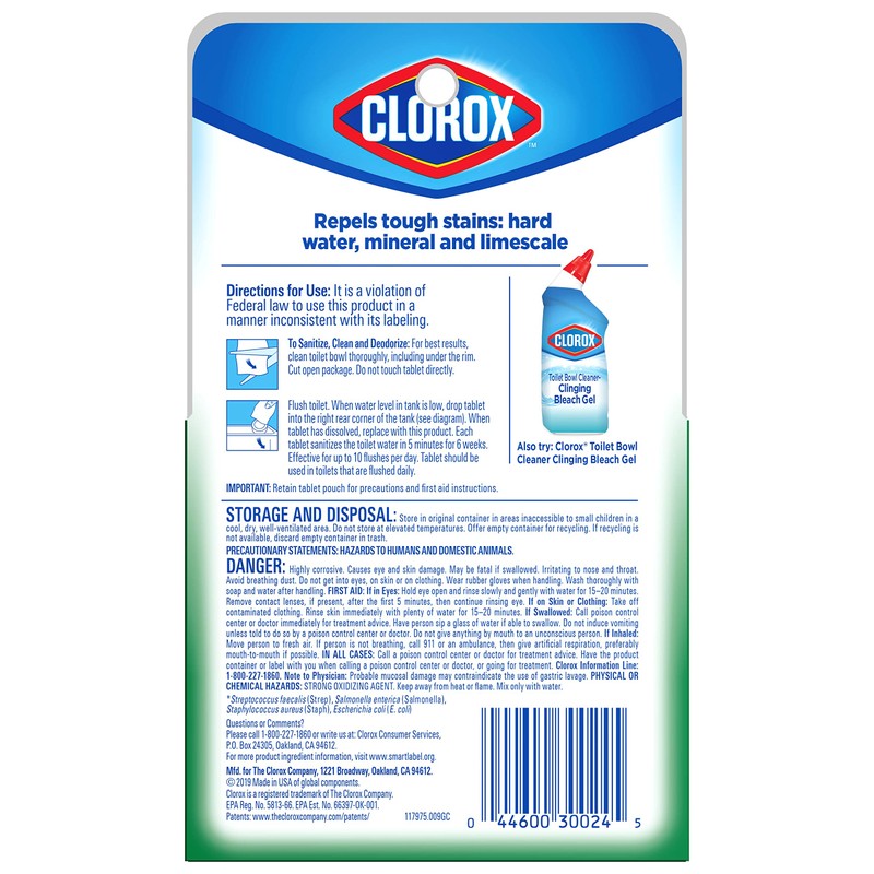 - TOILET BOWL CLEANER: Clorox Automatic Toilet Bowl Cleaner tablets kill 99.9% of household bacteria and sanitizes, cleans, and deodorizes your toilet bowl; Packaging may vary