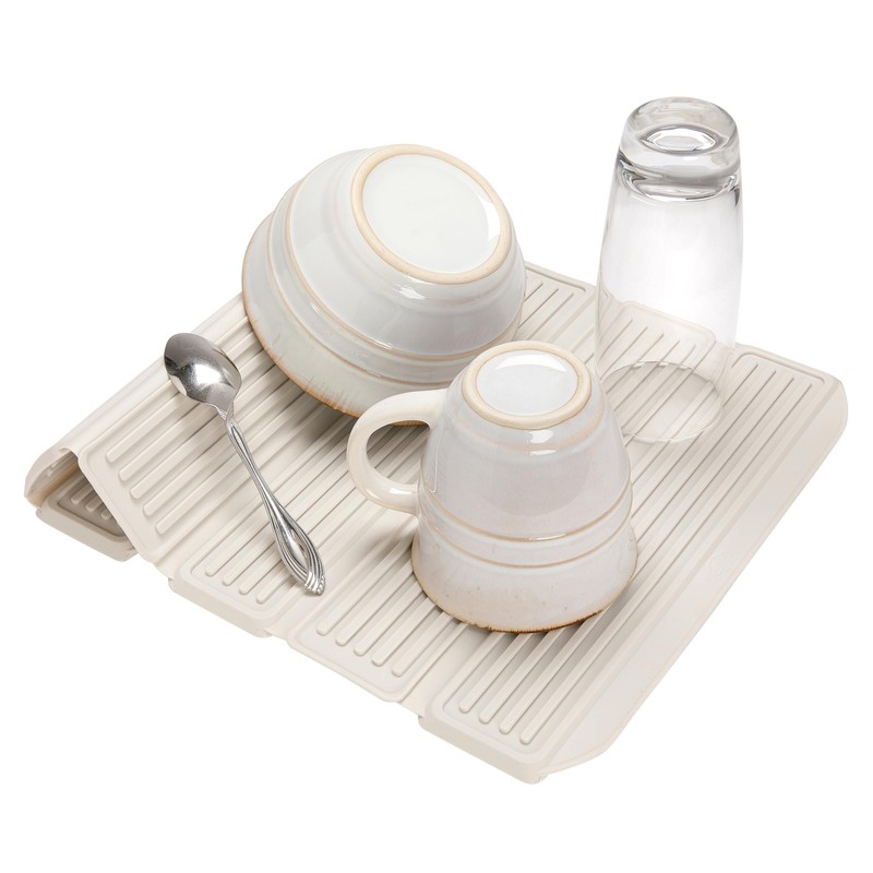 • FLEXIBLE: Flexi-Fold design creates unique drying elevations. Unlike flat fabric mats, the multi-positional panels can be propped and angled in many ways to support kitchenware of all shapes & sizes.